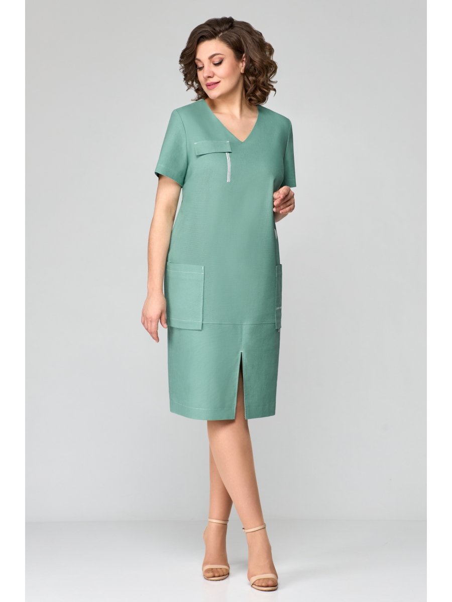 Оформить заказ →Платье с v -образным вырезом горловины и накладными карманми по перду.Платье декорированно контрастной тесьмой и котрастной отстрочкой. Рукав втачной одношовный. Длина платья 102см, длина рукава 22 см.