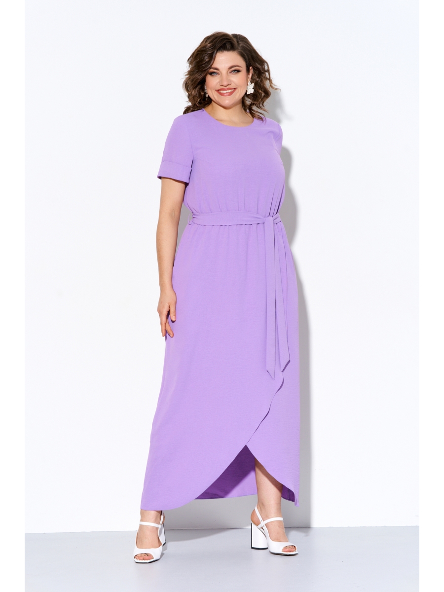 Женское летнее платье полуприлегающего силуэта со втачными рукавами и небольшой сборкой по линии талии выполнено из легкой не просвечивающейся натуральной ткани. Юбка платья на запах с подъюбником из основной ткани. В комплекте съемный пояс.