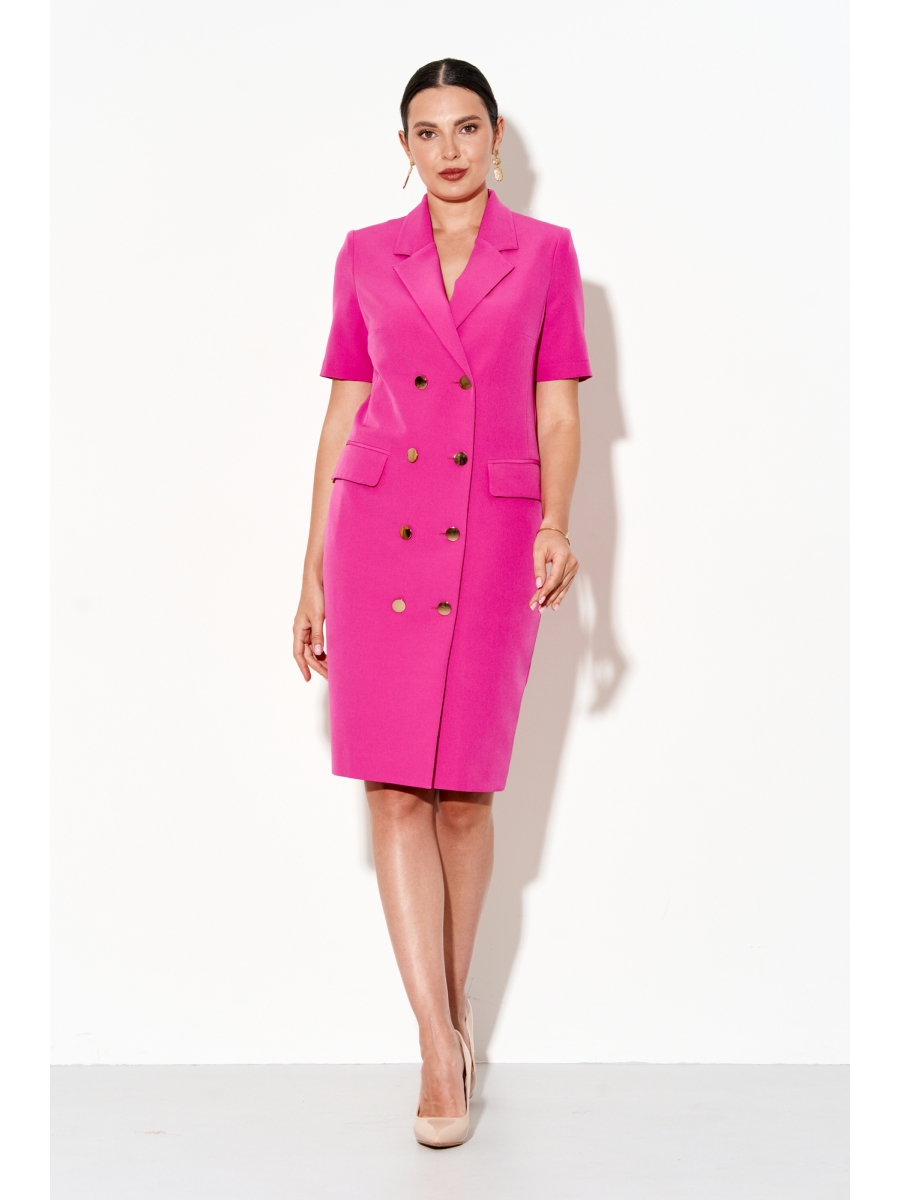 Женское классическое двубортное платье на хлопковой подкладке (идеально подходит для жаркой погоды, приятная к телу). Платье полуприлегающего силуэта со втачными рукавами и пиджачным воротником, по переду прорезные функциональные карманы, застежка на петли и пуговицы.