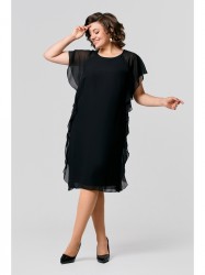 Платье женское прямого силуэта из легкой шифоновой ткани на подкладке из трикотажного полотна с антистатическим эффектом; рукава реглан, переходящие в декоративные воланы по переду и спинке. Рекомендована стирка при t не выше 30 С, глажение при t прессующей поверхности не выше 110 С.