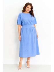 Женское платье свободного силуэта на подкладке выполнено из натуральной хлопковой ткани решелье. Платье с цельнокроеными рукавами, отрезное по линии талии, по спинке вставка из вискозы полностью на резинке, юбка платья на хлопковой подкладке, застежка по спинке на петлю и пуговицу. Платье полностью соответсвует заявленному размеру.
