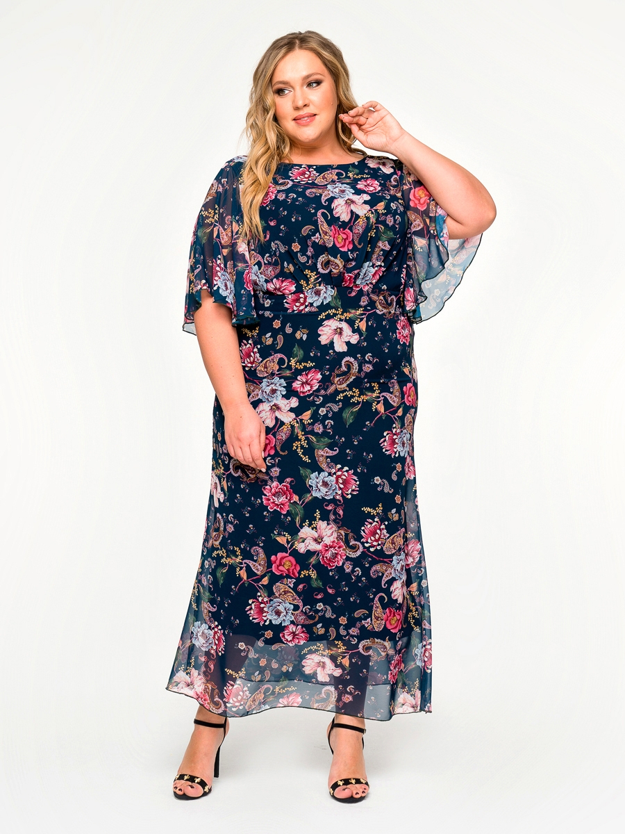 Платье из принтованого шифона с летяшим рукавом позволит каждой даме создать образ изысканный и неповторимый. Платье такого кроя удачно прячет имеющиеся особенности фигуры, подчеркивая женственность