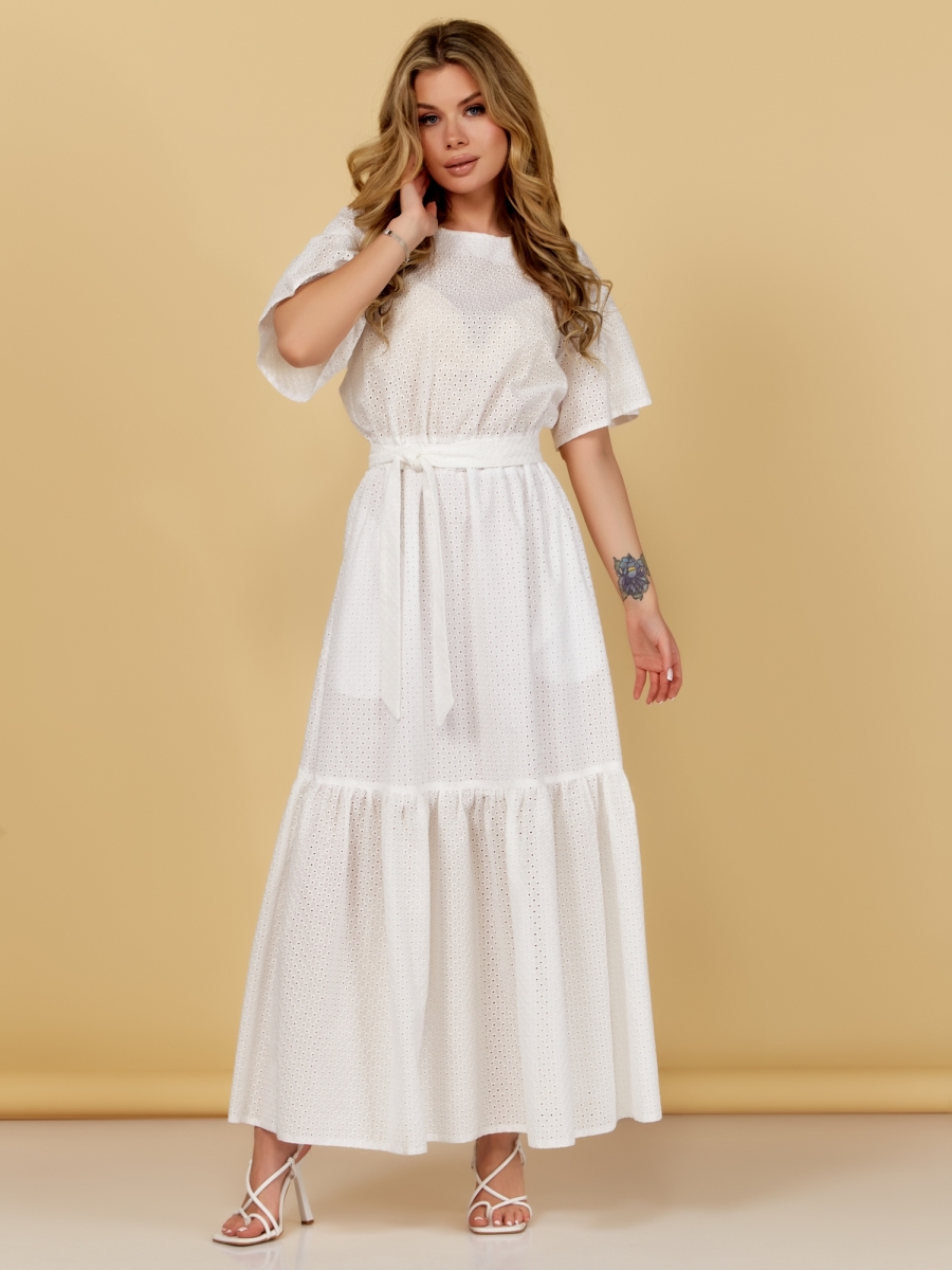 Платье женское, длина макси. Отрезное по линии талии, с втачным поясом с эластичной тесьмой.
