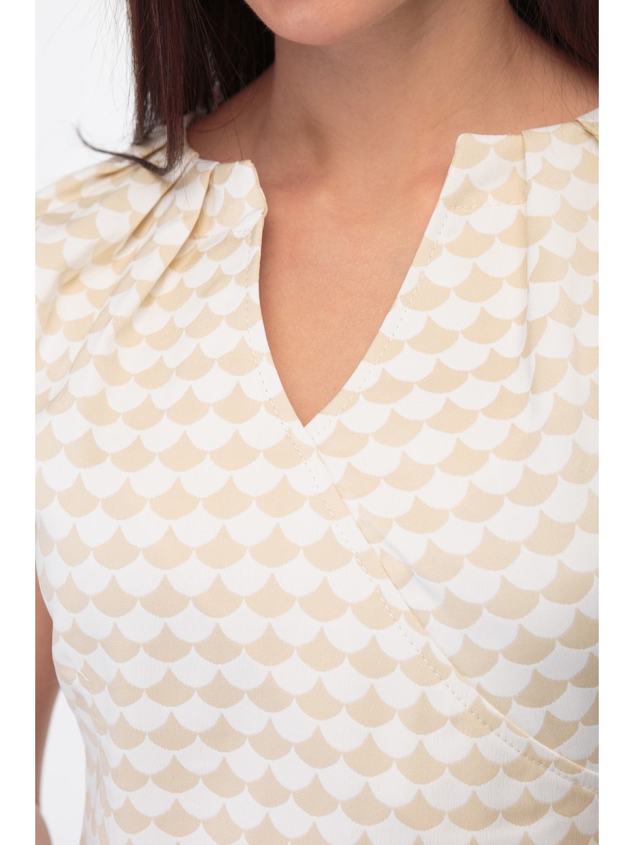 Платье из фактурной ткани сочных оттенков хорошо держит форму! Восхитительный принт! Элегантный, полуприлегающий силуэт, спущенная линия плеча, красивые конструкторские линии, имитирующие запах. Особое очарование добавляет необычный вырез горловины с каскадом маленьких складочек! Застежка на молнию в среднем шве спинки. Уместно как на работе, так и отпуске.