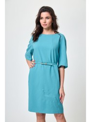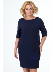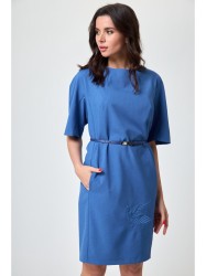 Платье прямого силуэта,по переду центральный шов,рельефы,переходящие в бочок,в рельефах рабочие карманы ;вырез горловины круглый. Пройма с притачной фигурной деталью. Спинка со средним швом и талевыми вытачками. Модель с подчёркивающим фигуру кроем.Вышивка по низу платья.Рукав реглан.
