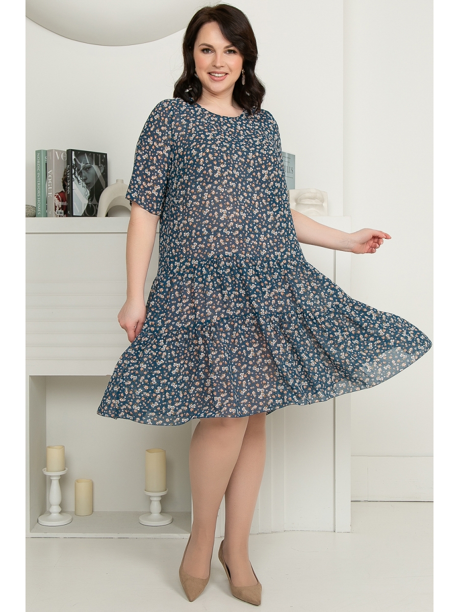 Оформить заказ →Платье женское трапециевидного силуэта, отрезное по линии бедер.Горловина круглая, рукав втачной, короткий. Спинка с застежкой в среднем шве на короткую потайную тесьму молнию. Нижняя часть переда и спинки с воланами в два ряда, собранными в сборку. К платью прилагается съемный чехол из трикотажного полотна.