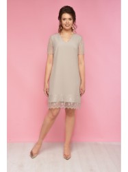 Короткое платье с гипюром - это стильное платье, которое выполнено из качественного текстиля и украшено французским кружевом. V-образный вырез горловины, горловина, рукава и низ платья декорированы кружевом. Застежка молния в среднем шве по спинке платья. Выполнено на подкладке.