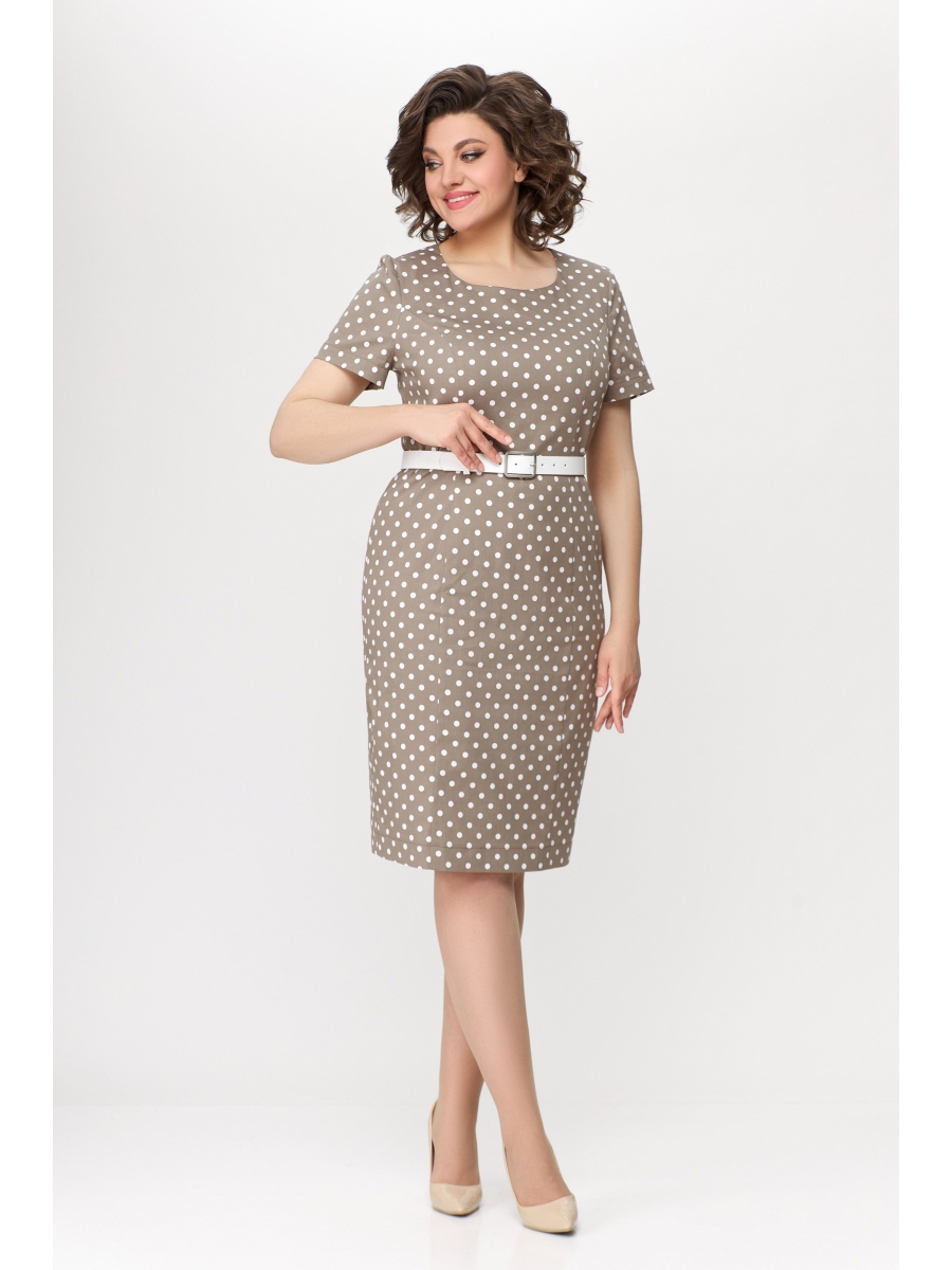 Платье полуприлегающего силуэта из эластичной хлопковой ткани (тонкий деним). Горловина платья круглая. По переду платья расположены рельефные швы. Спинка с рельефными швами и средним швом, в который вставлена потайная молния. По низу спинки обработана шлица. Рукав короткий, втачной, одношовный.