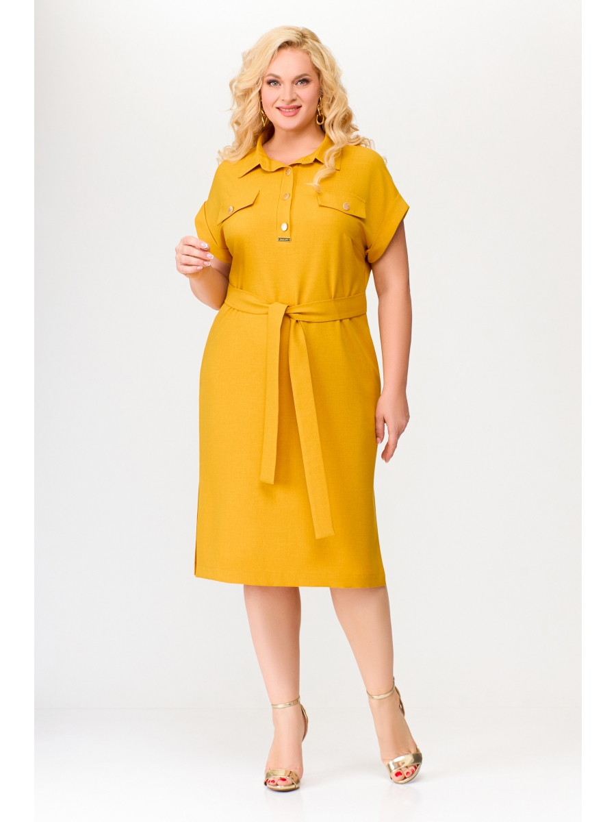 Оформить заказ →Платье из мягкой вискозно-льняной ткани полуприлегающего силуэта. По переду обработаны нагрудные вытачки и планка до линии груди, застёгивающаяся на 4 петли и 4 декоративные металлические пуговицы. По переду платья расположены два нагрудных клапана с пуговицами. Воротник рубашечный с отрезной стойкой. Рукав цельнокроеный, короткий, спущенный с отложной манжетой по низу. В комплекте пояс из основной ткани.