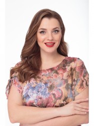 Функциональное летнее платье из креп-шифона - нежное и элегантное. Восхитительный цветочный принт с различными тонами! Прямой силуэт, спущенная линия плеча с кулиской и кокетливыми завязками! Сборка по плечу регулируется по желанию. Элегантный вырез горловины лодочкой!