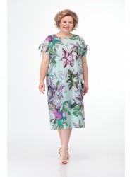 Функциональное летнее платье из креп-шифона - нежное и элегантное. Восхитительный цветочный принт с различными тонами! Прямой силуэт, спущенная линия плеча с кулиской и кокетливыми завязками! Сборка по плечу регулируется по желанию. Элегантный вырез горловины лодочкой!
