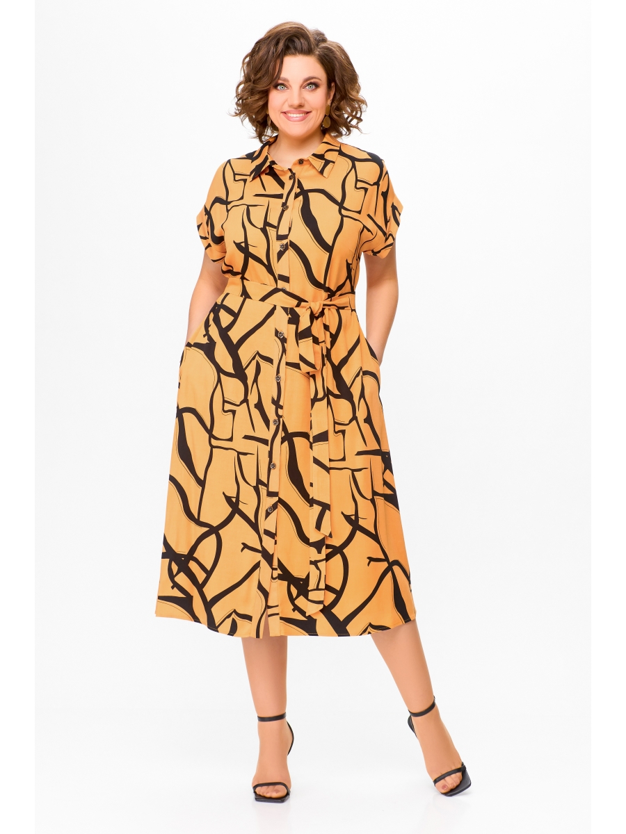 Оформить заказ →Платье-рубашка свободного кроя, расклешённое к низу. Застёжка центральная на петли и декоративные пуговицы, пройма спущенная с отложной манжетой. Спинка цельная. Воротник отложной со стойкой. В боковых швах предусмотрены карманы. По желанию подчеркнуть талию можно поясом, идущим в комплекте.