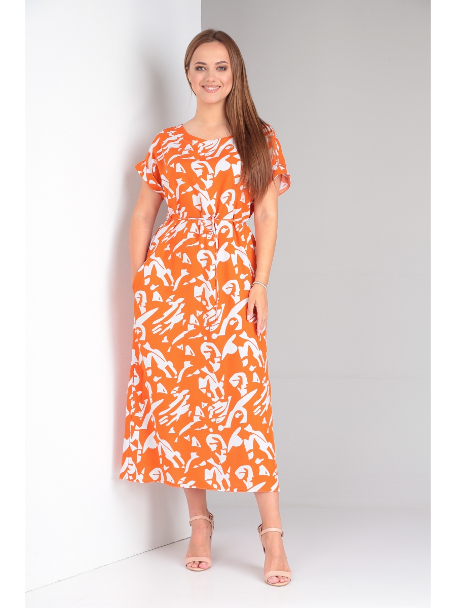 Оформить заказ →Платье женское из вискозной ткани свободного кроя со спущенным рукавом. По переду: отрезные планки по плечу. По спинке: средний шов, по центру «капелька» с застёжкой на петлю-пуговицу. Рукав цельнокроеный, спущенный, с отложенной манжетой. Горловина в форме «лодочки», обработана обтачкой; по горловине отделочная строчка. В боковых швах карманы и шлицы (длина края 39 см). В комплект входит декоративный пояс.