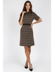 Платье женское полуприлегающего силуэта, отрезное по линиям талии. Линия талии с отделочной эластичной тесьмой. На полочке застежка на петли и пуговицы. Рукав втачной короткий.