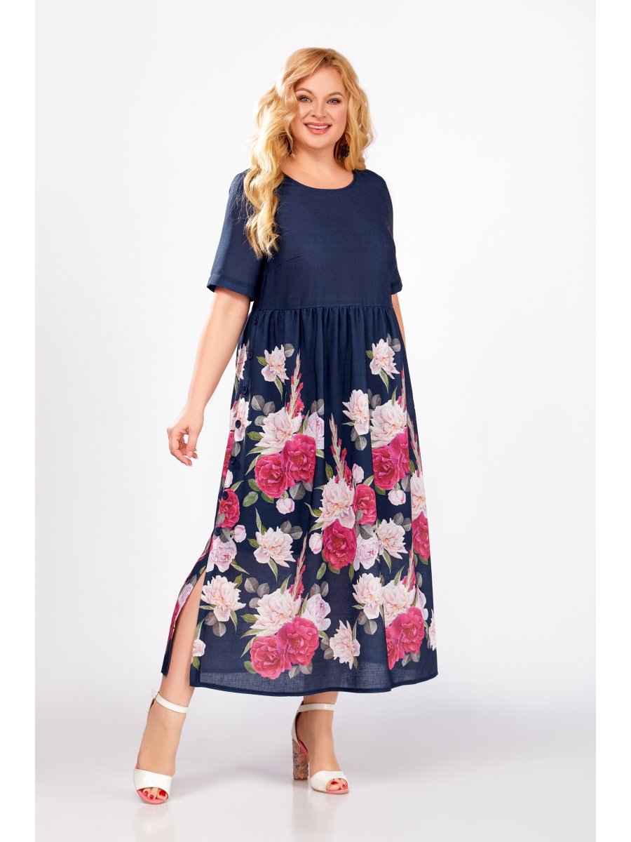Платье из вискозно-льняной ткани с оригинальным принтом прямого силуэта длиной миди. Платье с отрезной, слегка завышенной линией талии и сборкой по юбке.