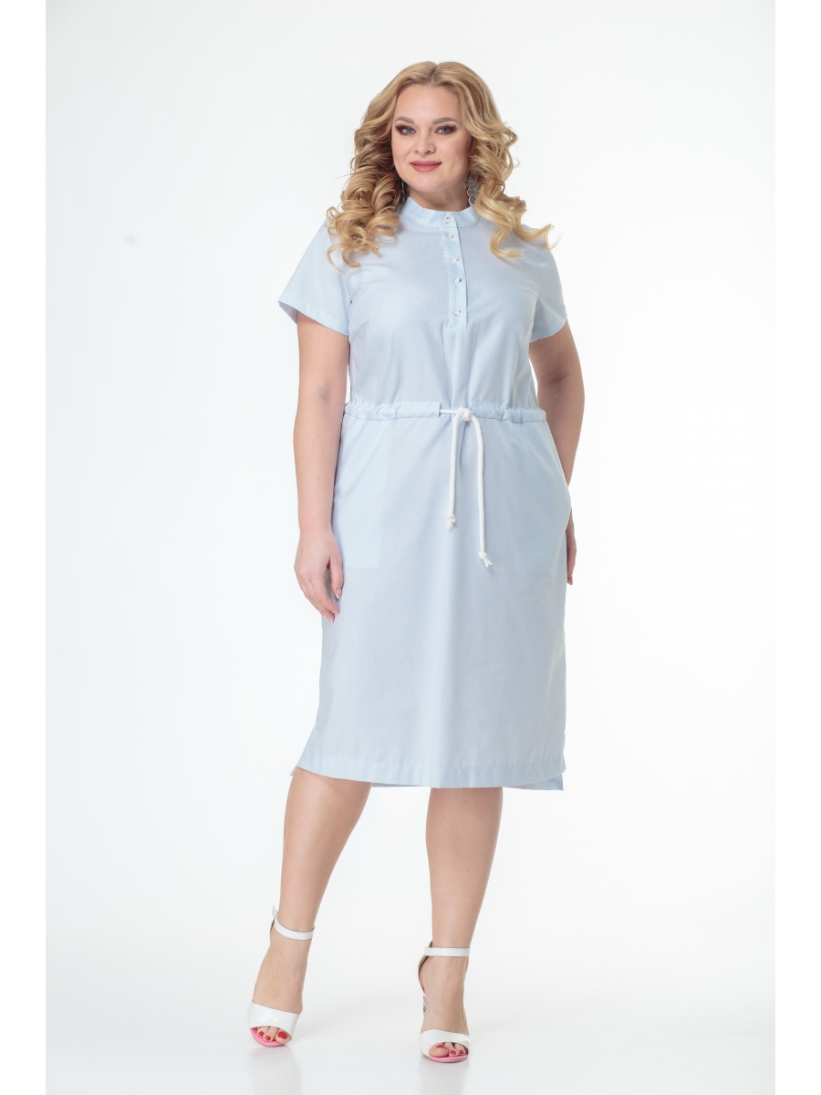 Платье прямого силуэта, приталивание обеспечивает кулиска по талии, длиной до колена, спинка слегка удлинена, в боковых швах обработаны разрезы.