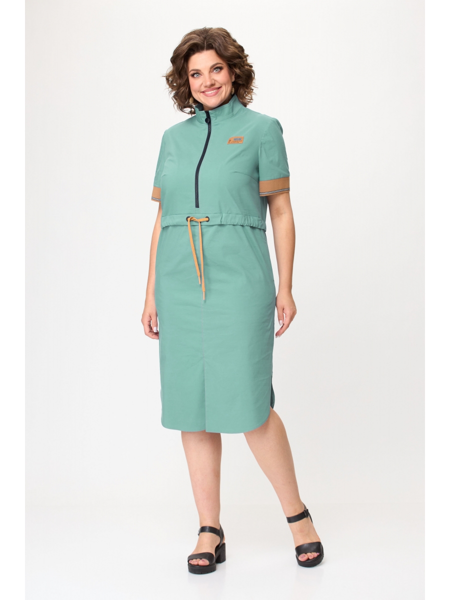 Платье полуприлегающего силуэта отрезное по линии талии, с втачной кулисой и декоративным шнуром. Застежка на тесьму молния в центральном шве переда, горловина со стойкой.