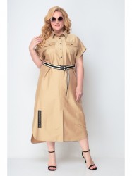 Платье рубашечного типа, свободного кроя - выполнено из натуральной хлопковой ткани. Универсальность кроя и натуральная ткань сделают его любимым изделием Вашего гардероба в наступающем сезоне. По переду сверху застегивается на пуговицы, снизу сбоку разрез, по спинке длиннее. Рукав короткий цельнокроеный приспущенный на отложенной манжете. Благодаря встречной складке на спинке имеет небольшое клешение. По желанию фиксируется поясом, который идет в комплекте. Изделие подойдет на рост 170 см.