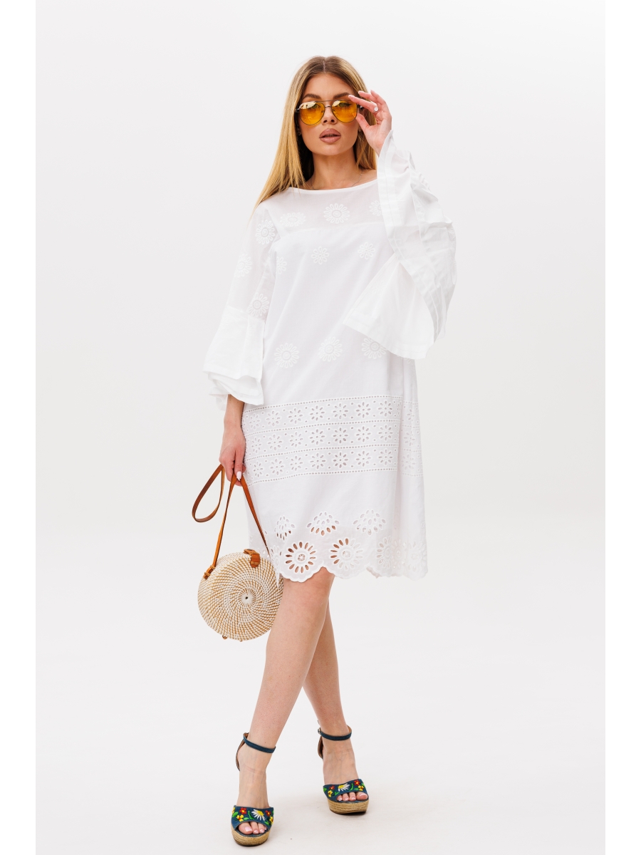Оформить заказ →Платье свободного силуэта (стиль оверсайз), на кокетке по переду и спинке. Рукав цельнокроенный. По низу рукава притачные воланы. Платье на подкладке.