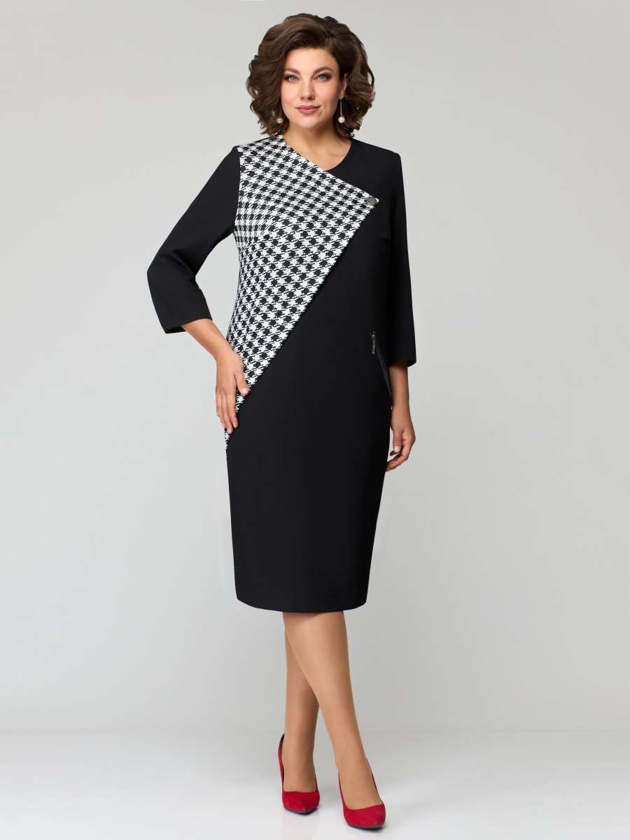 Оформить заказ →Платье прямого силуэта. Отличный вариант для повседневных луков, который также можно смело можно носить на работу. По переду асимметричный подрез с отлетным краем из отделочной ткани принт «гусиная лапка». По левой части переда карман с молнией. Спинка с потайной молнией в среднем шве, по низу разрез. Рукав втачной двухшовный.
