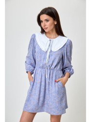 Платье женское свободного кроя, округлая горловина, длина до колена. Рукав 3/4, со сборкой по окату и низ на резинке. По линии талии резинка. На спинке глазок, на петле пуговице. Платье благодаря цвету и принту дышит женственность и лёгкостью, актуально и стильно. Благодаря съемному воротнику и подъюбнику можно создавать нежнейший образ. Купив его вы ни разу не пожалеете о своём выборе.