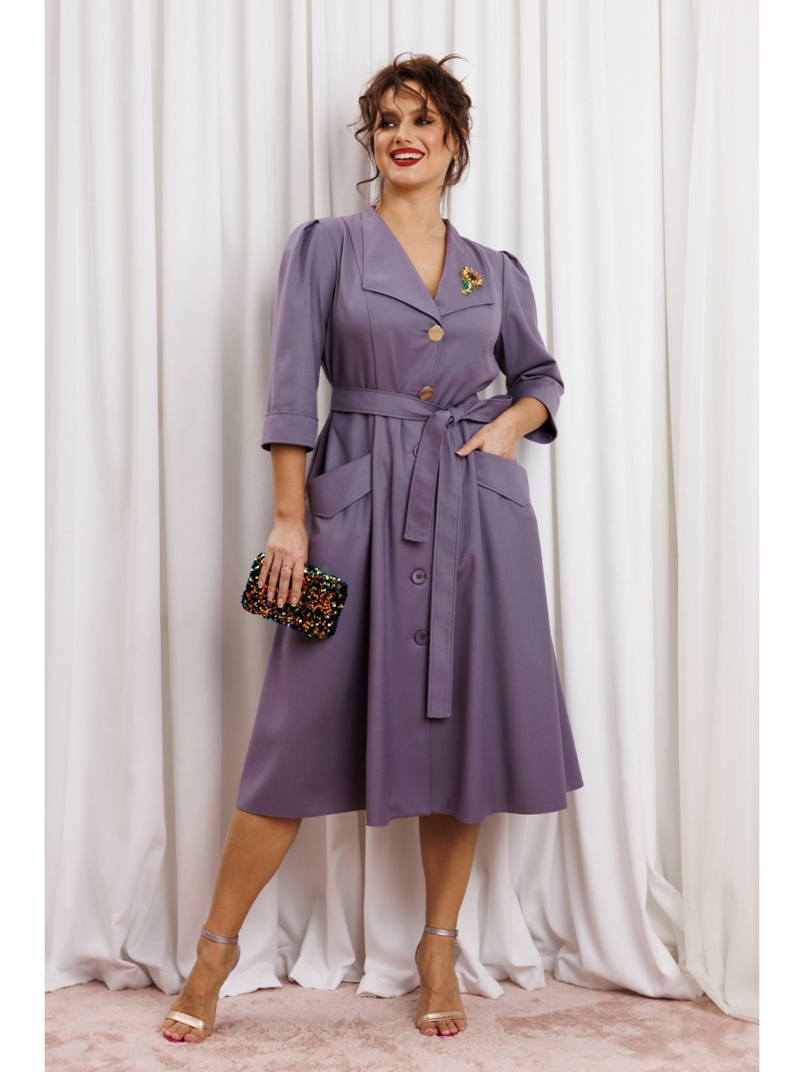 Бренд белорусской женской одежды больших размеров Anastasia представляет красивое, дизайнерское, платьев романтичном стиле для женщин плюс сайз. Платье полуприлегающего силуэта с рельефами, выходящими из плечевого шва, и переходящими в юбку-гаде. Застежка на петли и пуговицы. Воротник стояче-отложной опаш. По полочке идут карманы с клапанами. Рукав 3/4 длины с отложной манжетой и складками по плечу. В качестве декора идет разный дизайн пуговиц и пришивная брошь. Подчеркнуть талию можно с помощью пояса, который идет в комплекте. В этом платье вы будете центром внимания в любой компании. Благодаря женственному силуэту вы будете всегда ощущать себя красивой и модной.