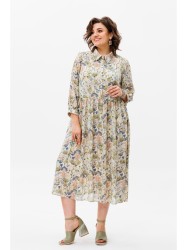 Горловина с воротником на стойке – это изысканный акцент, придающий платью утонченность. Отрезное по талии платье создает легкость движения и подчеркивает вашу женственность. Нагрудные вытачки на передней части добавляют дополнительную структуру и сдержанную грацию.