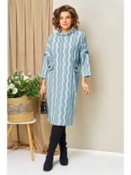 Идеальное платье из эластичного трикотажа, полуприлегающего силуэта, с горловиной формы мягкая стойка с подворотом. Клапаны с декоративными однотонными пуговицами дополняют и украшают элегантный образ. Практичный материал не мнется и не теряет форму. Рукава платья длиной 7/8.