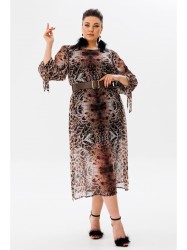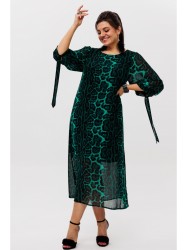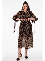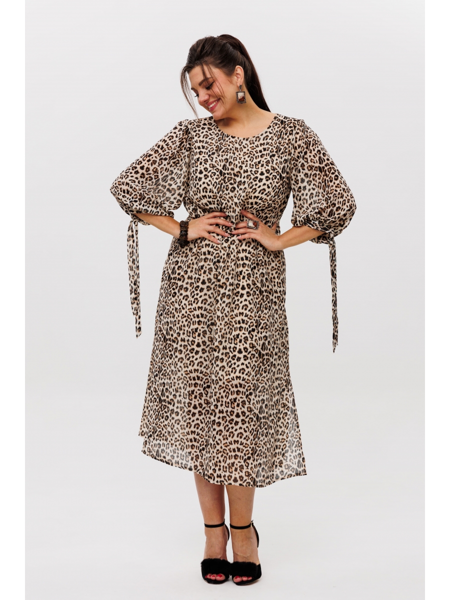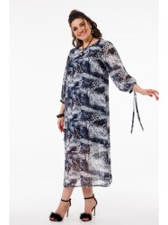 Нежный шифон с оригинальным и запоминающимся принтом создаёт ощущение легкости и воздушности, что делает его незаменимым для особых случаев. Завязки на рукавах добавляют особого шарма, подчеркивая индивидуальность, а изящные разрезы вдоль юбки — смелости и элегантности вашему образу.