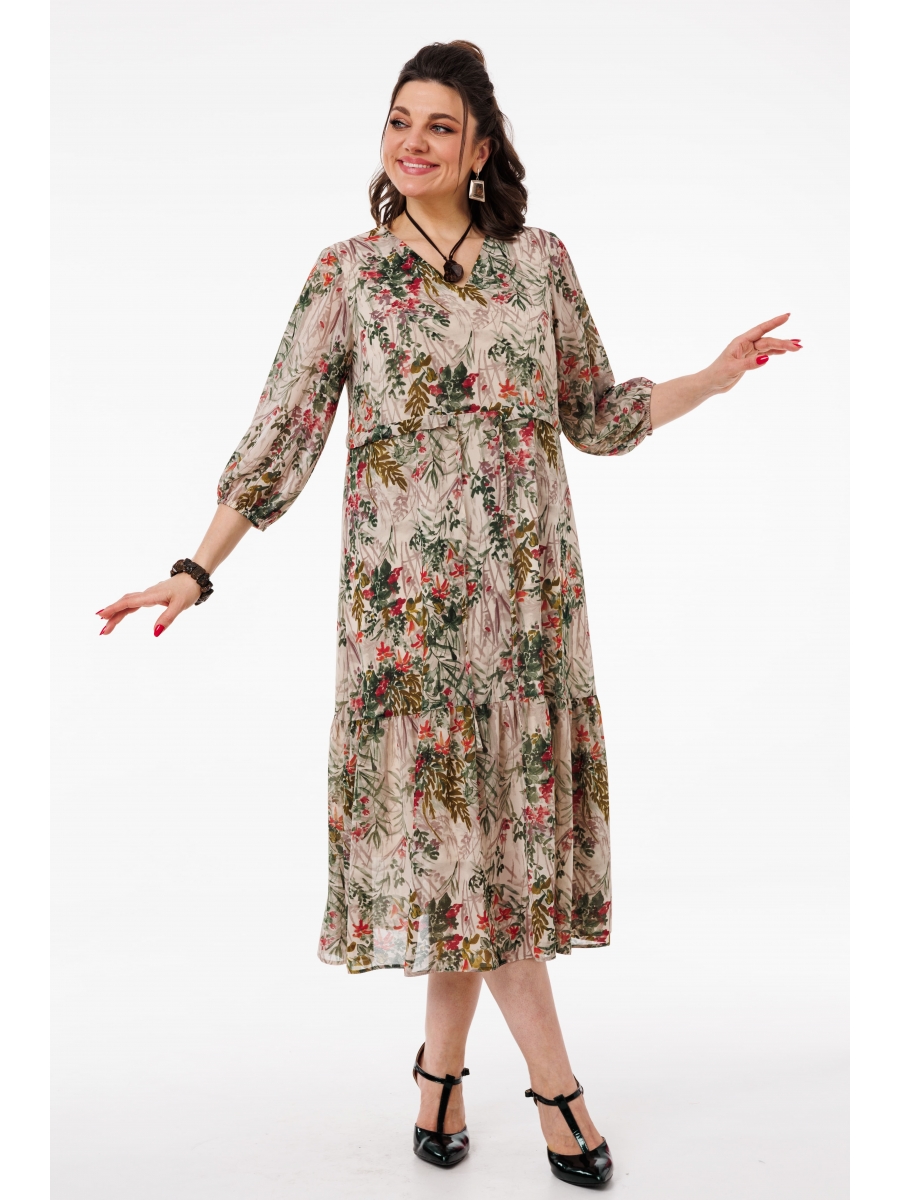 Погрузитесь в мир элегантности и утонченности с этим потрясающим платьем А-силуэта. Его изысканный V-образный вырез нежно обрамляет шею, придавая образу особую грацию и шарм. Рукава длиной 3/4, выполненные с легким расширением к низу, добавляют воздушности и романтики, а резинка на рукавах обеспечивает комфорт и свободу движений.