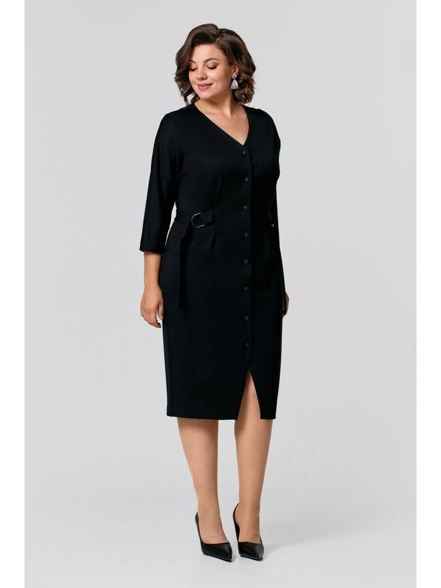 Оформить заказ →Платье полуприлегающего силуэта из трикотажа средней плотности с цельнокроеными рукавами, по переду платья декоративный втачной пояс на регуляторах, вырез горловины V-образный, застежка на петли и пуговицы.