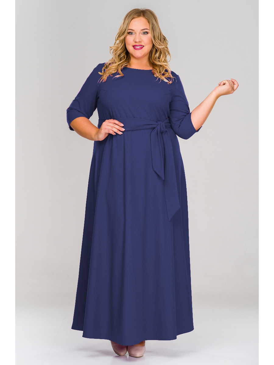 Длинное локоничное платье из крепа, пояс в цвет основной ткани