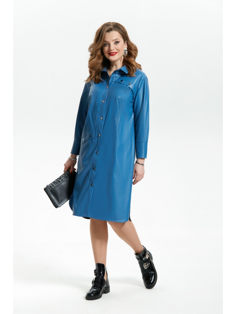 Оформить заказ →Платье из кожи прямого силуэта, разновеликой длины по переду и спинке, с разрезами по бокам. Небольшой рубашечный воротник, планка с застежкой на кнопки. Вдоль кокетки спинки и по переду вставлены детали декорированные кнопками. Рукав втачной длиной 7/8, на высокой манжете застегивающейся на молнию.