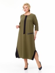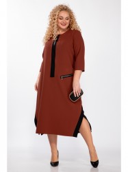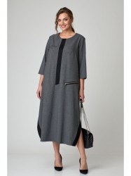 Платье в стиле casual предназначено для повседневной носки, прекрасно сочетается с любой по стилю обувью. Платье свободного кроя, ниже колена, рукав ¾. В качестве декора по переду изделия — вставлена планка из контрастной ткани, также имеется модный принт и имитация кармана, с декоративной молнией. По бокам изделия — разрезы, которые также обработаны контрастной тканью, в цвет декоративной планки. Изделие подойдет на рост 170 см.