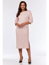 Базовое, прекрасно подходящее для повседневной жизни платье. Комфортный, прямой силуэт мягко сядет по фигуре и не будет сковывать ваших движений. Платье выполнено из мягкого, уютного, приятного на ощупь трикотажа «в косичку». Спущенный рукав длиной 7/8. По переду изделия - карман, который украшен небольшой брошью. Также украшением изделия служит боковой разрез. Вырез горловины "лодочка". Платье прекрасно сочетается с любыми украшениями и разной по стилю обувью.