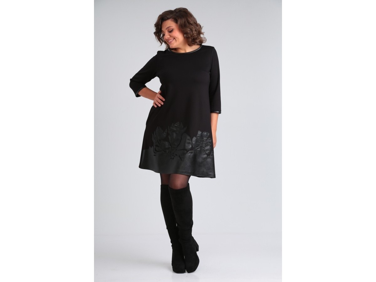 Универсальное женское платье, которое смело можно носить как в офис, так и на торжество. Выполнено из вискозного трикотажа, украшенного настрочной вышивкой «цветы» из эко кожи. Платье трапецевидного силуэта, длиной выше колена, с втачным рукавом 3/4. Спинка цельная с застежкой в горловине на декоративную молнию. Низ рукава и горловина обработаны бейкой из эко кожи. В боковых швах имеются карманы. Платье подчеркнет Ваши достоинства и не будет сковывать движения. Оно прекрасно дополняется различными аксессуарами. Длина изделия по спинке 93см+-1 см, длина рукава от плечевого шва 47см+-1 см.