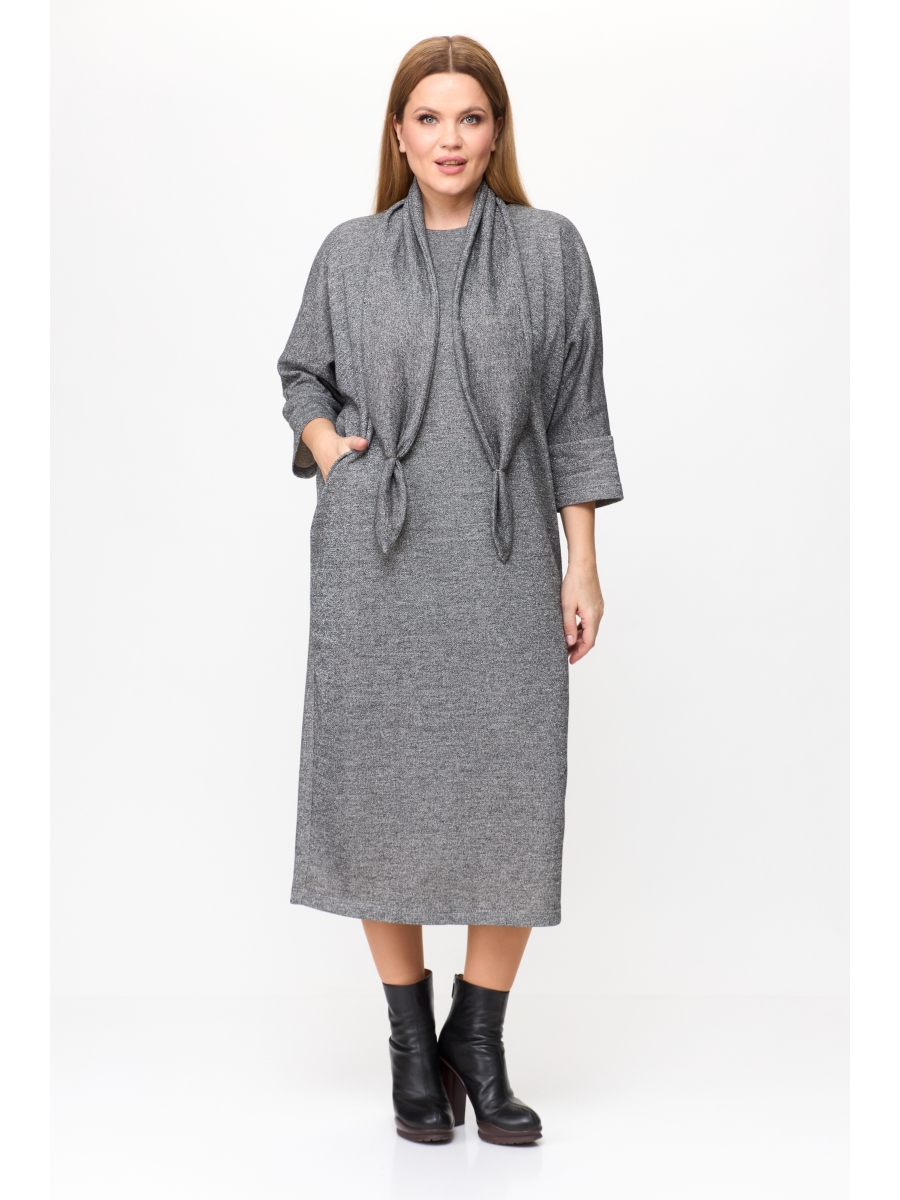 Актуальное повседневное платье из мягкого трикотажа - футер трехнитка с блеском. Комфортный силуэт, который мягко сядет по фигуре. Достаточно свободное по бёдрам и по груди. Платье с округлой горловиной, цельнокроеным рукавом «летучая мышь» и нижней притачной частью длиной 7/8. Перед цельный с рельефными нагрудными выточками, заканчивающимися в боковых швах и двумя карманами. Спинка с центральным швом и разрезом по низу. В комплекте идет съемный шарф из основной ткани, который украсит платье и согреет Вас. Данное платье прекрасно сочетается с разной по стилю обувью. Если любите платье больше по фигуре, то смело можете брать на размер меньше.