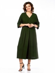 Платье-оверсайз, с отрезной талией, юбка со складками, карманами в боковых швах, рукав 3/4.