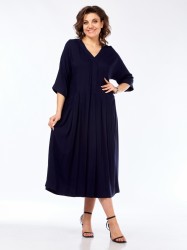 Платье-оверсайз, с отрезной талией, юбка со складками, карманами в боковых швах, рукав 3/4.
