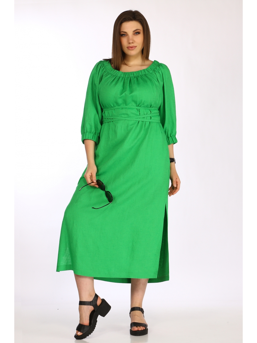 Платье свободного силуэта выполнена из натурального умягченного льна, рукав реглан на эластичной манжете.
