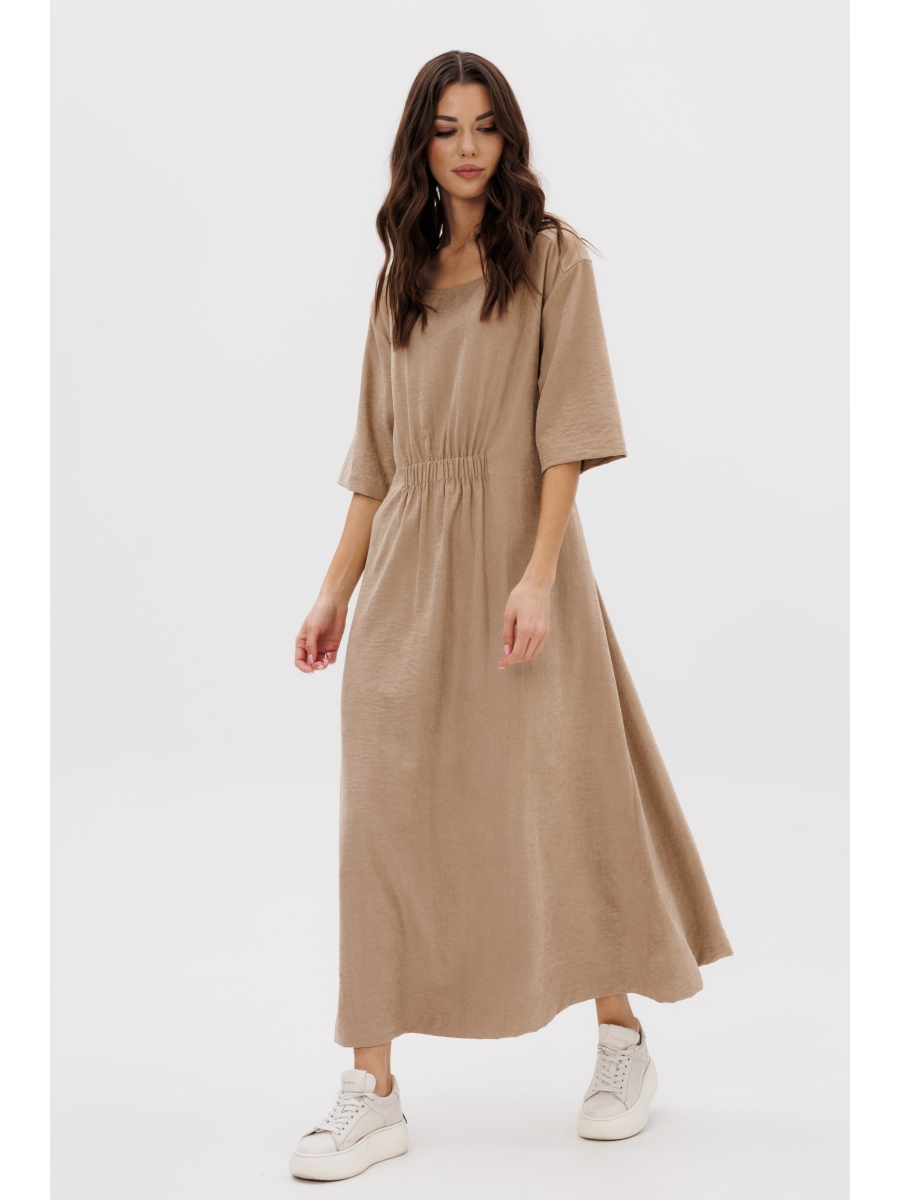Оформить заказ →Платье в стиле кэжуал-это комфорт, простота, удобство кроя в сочетании с непринужденностью и универсальностью. Свободный А-силуэт, рубашечный покрой с заниженной линией плеча, рукав, длинной до локтя, изящная круглая горловина. Полочка с декоративным элементом с эластичной тесьмой. Спинка со средним швом, поясом-шнурком, и декоративной нашивкой.