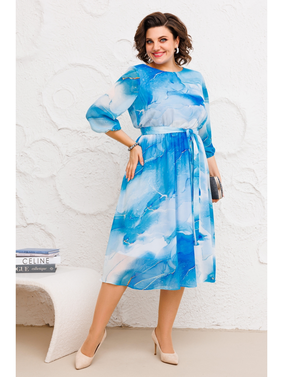 Роскошное женское платье полуприлегающего силуэта, расширенное к низу, выполнено из высококачественного шифона с модным дизайнерским принтом. Платье отрезное по талии со сборкой на резинке, полностью на трикотажной подкладке. Вырез горловины округлый, на обтачке. Рукава втачные, по низу собраны на узкую резинку.