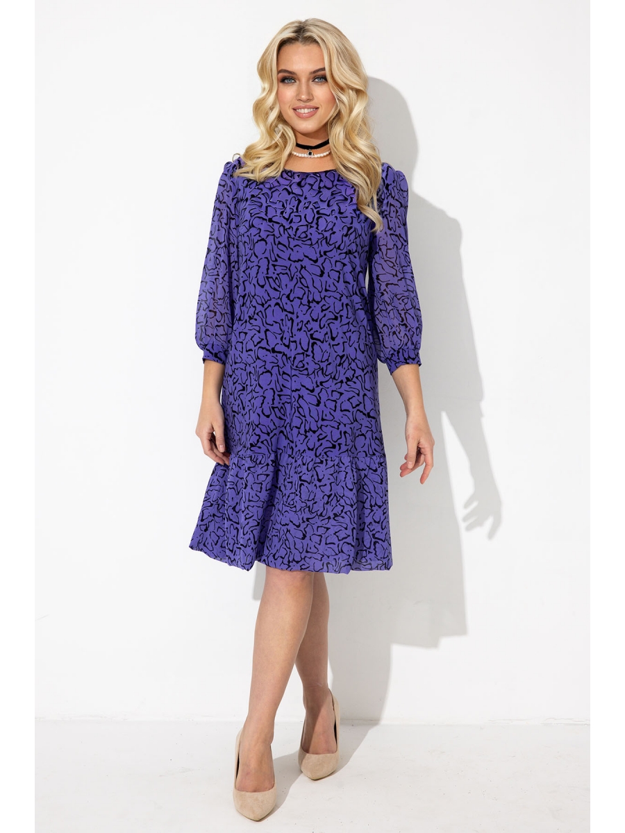 Платье женское классическое, нарядное. Основа платья выполнена из трикотажного полотна - масло, волан и рукав - из шифона. Рукав 3/4. Платье красивое пышное, немного свободное в крое. Базовый вариант платья в А-силуэте.