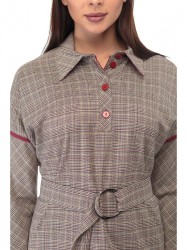 Элегантное платье с цельнокроенными рукавами из ткани в стильную клетку.