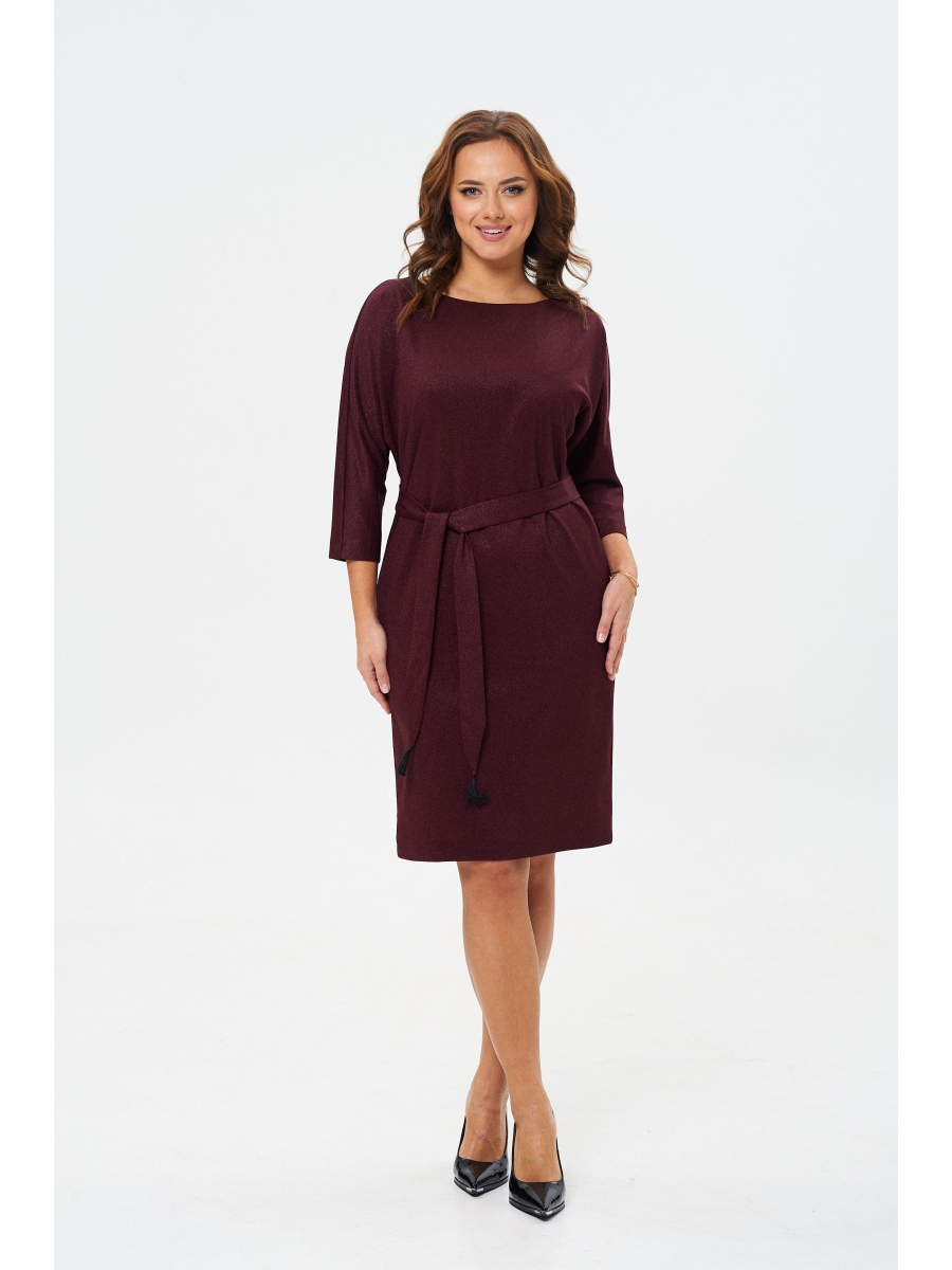 Оформить заказ →Платье прямого силуэта, выполнено из трикотажного полотна с легким мерцанием (блеском). Рукав цельнокроеный, длина ¾. По переду платья нагрудные вытачки. Вырез горловины «лодочка». По спинке застежка-молния. Платье с поясом, на концах которого декоративные кисточки.