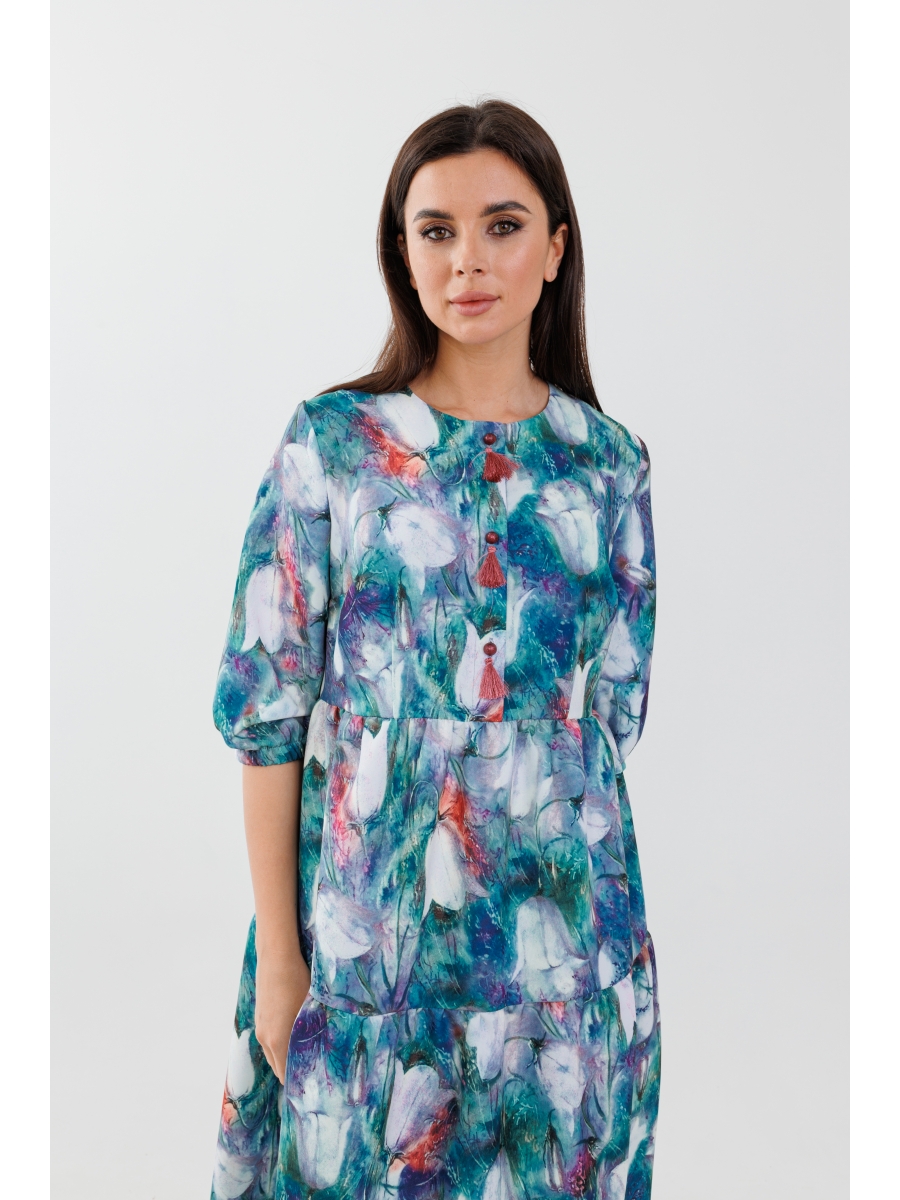 Нам нравятся такие модели: романтичные на первый взгляд и чувственные при ближайшем рассмотрении. Мягкая на ощупь ткань красиво ложиться в каскаде воланов. Красивые втачные рукава со складкой по низу и пуговицами!
