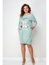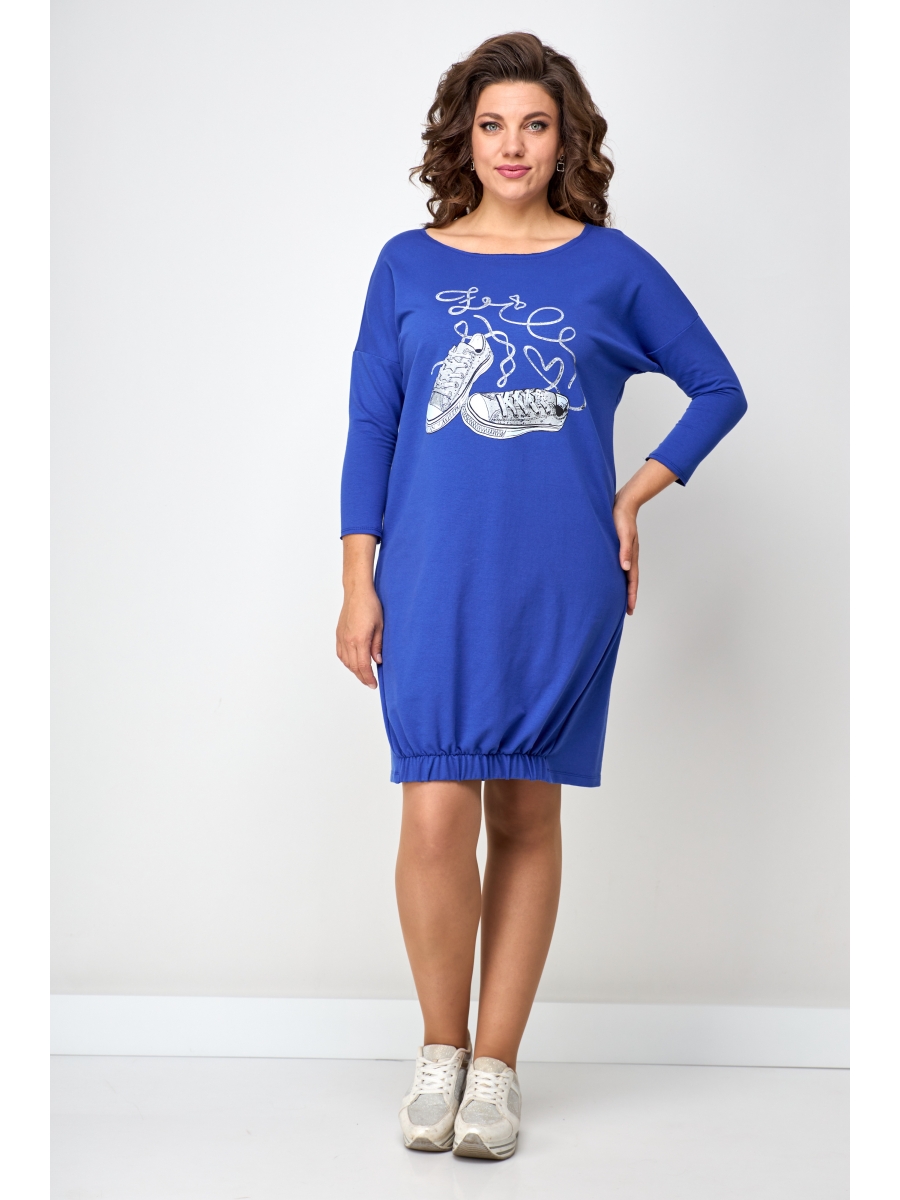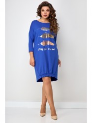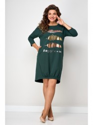 Оформить заказ →Платье свободного силуэта со спущенным рукавом. Горловина округлая. Рукав ¾. По низу боковой шов смещенный. Спинка переходит на переднюю часть полочки, за счет этого визуально уменьшается размер и фигура кажется стройнее. Низ полочки на широком (3см) резинке, платье не кажется объемным, на ширину шага не влияет. Украшением платья служит термо-печать.