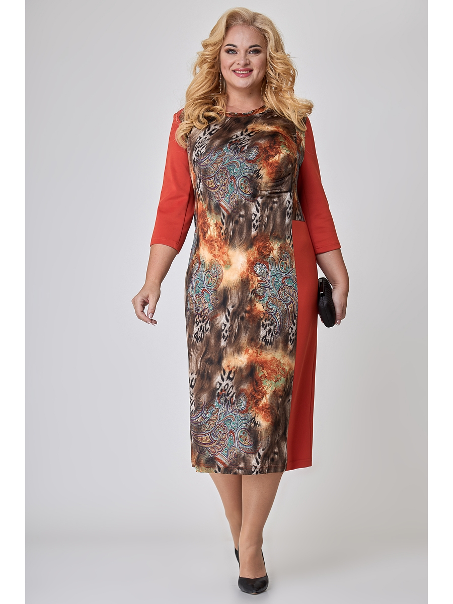 Оформить заказ →Трикотажное платье прямого силуэта длины миди. Простые линии придают женскому облику изысканность и лаконичность. Благодаря универсальности, модель подойдет на любой случай. Спинка платья со средним швом, в котором есть потайная молния, небольшая шлица. По переду платья есть рельефные швы от пройм. В правом рельефном шве - карман, а в левой центральной части в области груди - драпировка. Рукава длиной 3\4, двухшовные. Вырез горловины круглый, обработанный планкой из отделочной ткани. Контрастное сочетание двух тканей по переду отлично выделяет платье и делает его ярче.