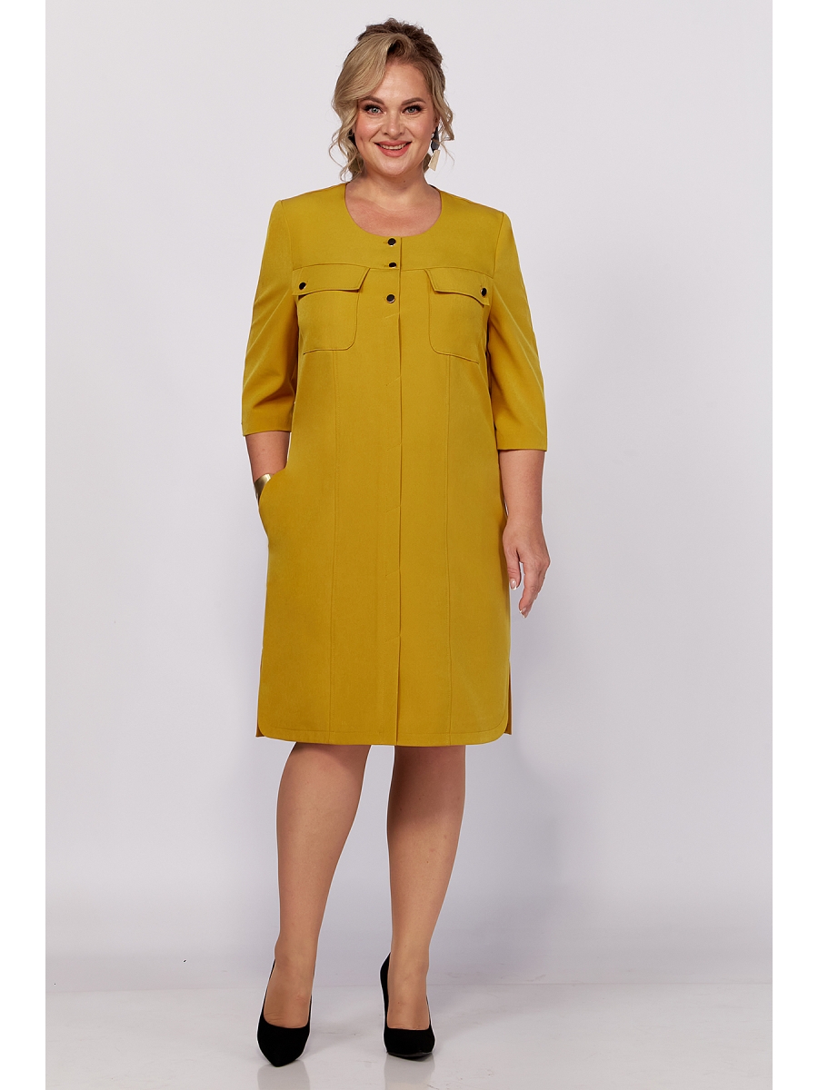 Представляем Вам превосходное женское платье прямого силуэта, которое станет настоящей находкой для всех модниц и идеально подойдет для офисного и делового стиля.  Это платье обладает не только изысканным дизайном, но и идеально сочетает в себе комфорт и стиль. На полочке, по среднему шву, обработана планка на петли и пуговицы, которая также декорирована закрепками. Полочка и спинка с рельефами и отделочными строчками. Перед изделия с накладными карманами и клапанами с застёжкой на пуговицы. В боковых швах обработаны карманы. Рукав втачной с отрезной планкой и пришивным декором. Идеальная длина делает его универсальным и подходящим для невысоких и высоких девушек. Одной из самых важных отличительных особенностей данной модели является ее доступность в больших размерах. Утонченный дизайн платья делает его идеальным выбором для нарядного и праздничного мероприятия. Благодаря своей универсальности, оно подойдет также для повседневного образа. Кроме того, этот гардероб также отлично подходит для офисного и делового стиля. Его изысканный фасон и элегантность добавят уверенность и шарм Вам в рабочем окружении. Не упускайте свой шанс приобрести стильное, универсальное и качественное платье, которое подчеркнет вашу индивидуальность и будет соответствовать самым высоким требованиям моды! Будьте уверены в своем выборе и впечатлите всех вокруг своим неповторимым стилем!