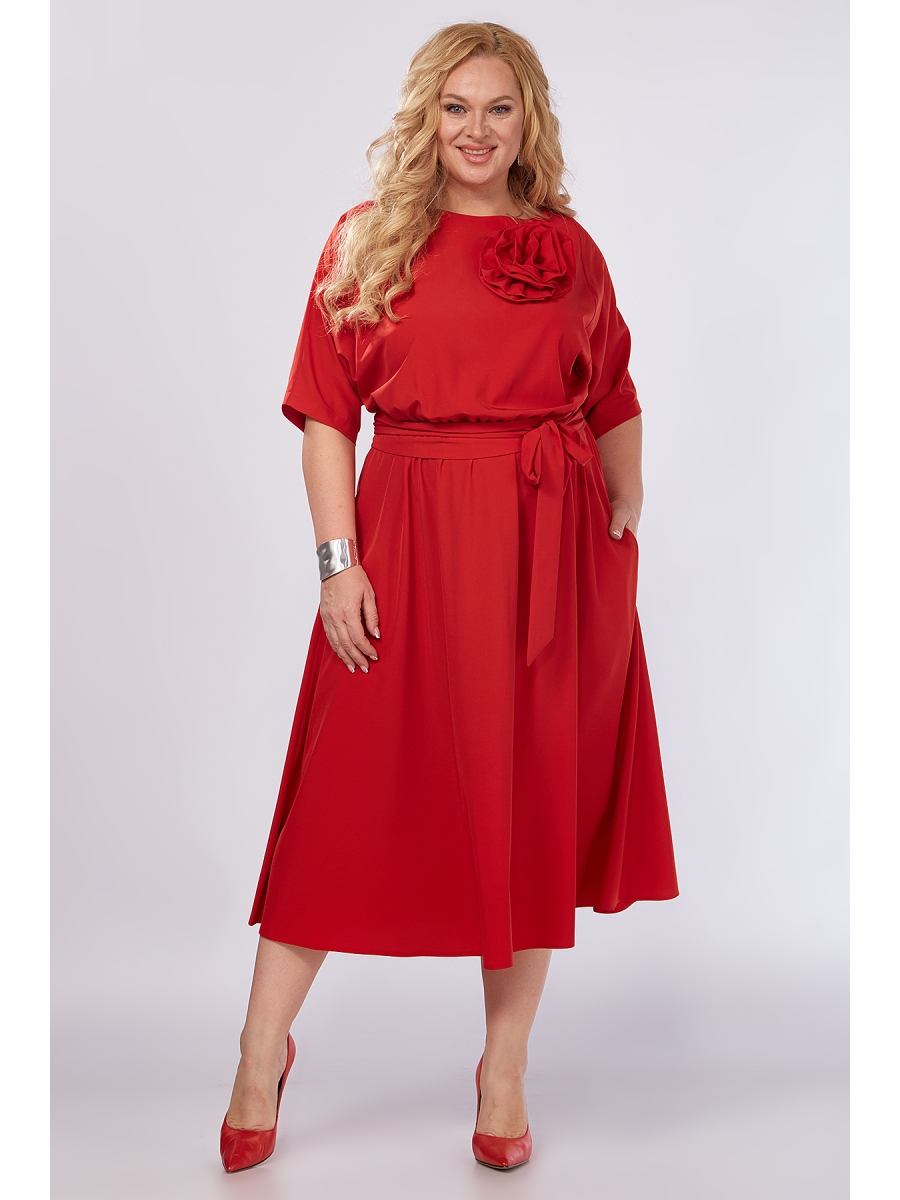 Приятное к телу женское вечернее платье из легкой плательной ткани без подкладки. Женственное и элегантное, оно украсит Вас по случаю любого праздничного торжества. Изделие красиво драпируется, не электризуется. Платье отрезное по талии, которая собрана на резинку для идеальной посадки практически на любую фигуру. Вырез горловины - лодочка - имеет достаточную свободу и застегивается на петлю и пуговицу по спинке. Рукава длиной 3/4. В боковых швах обработаны карманы. Низ - четверть солнца. В комплекте с платьем идет съемный цветок, а также нарядный широкий пояс-кушак, которым можно подчеркнуть изящный силуэт и прикрыть животик. Элегантное платье обязательно должно быть в гардеробе современной женщины! Создавайте с ним романтичные образы на мероприятия по случаю любых праздников!